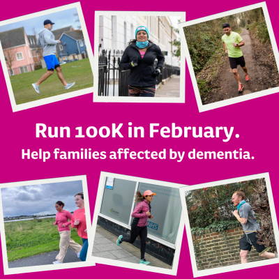 Run 100K in February. Raise vital funds to provide specialist dementia support for more families across the UK. Your support is life-changing.