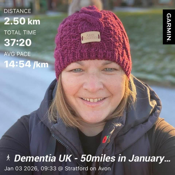 This January, I'm walking 50 Miles and raising funds to help ensure no family faces dementia alone. I'm taking on the challenge for Dementia UK, the specialist dementia nursing charity, and would be grateful for your support.