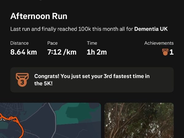 I'm running 100K for Dementia UK