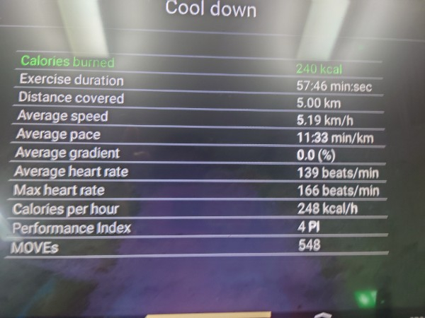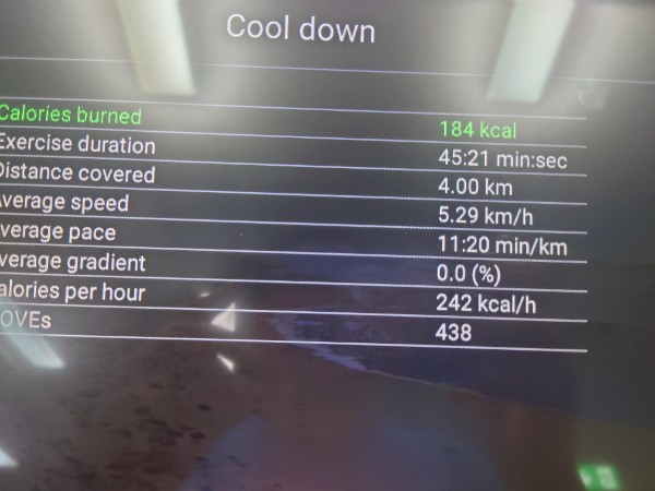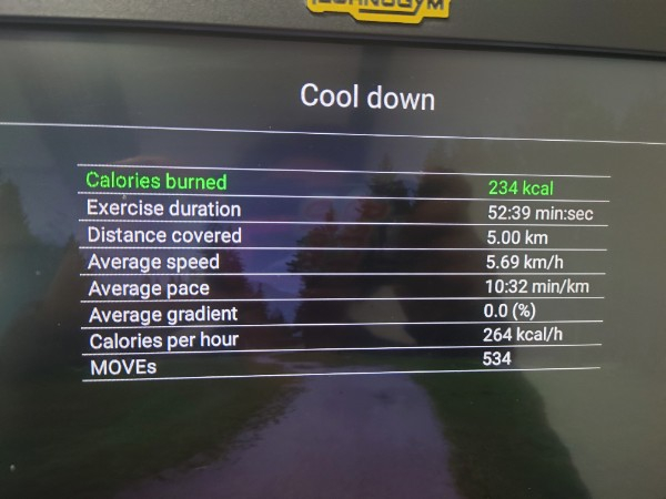 5km outside and 3 km inside for a total of 8 km today. 12 km to go!!