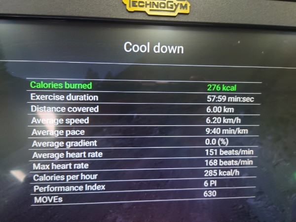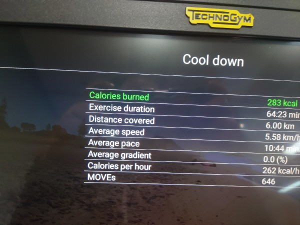 6 km in the gym and 2 km run outside for a total of 8 km