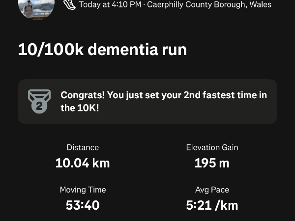 I'm running 100K for Dementia UK