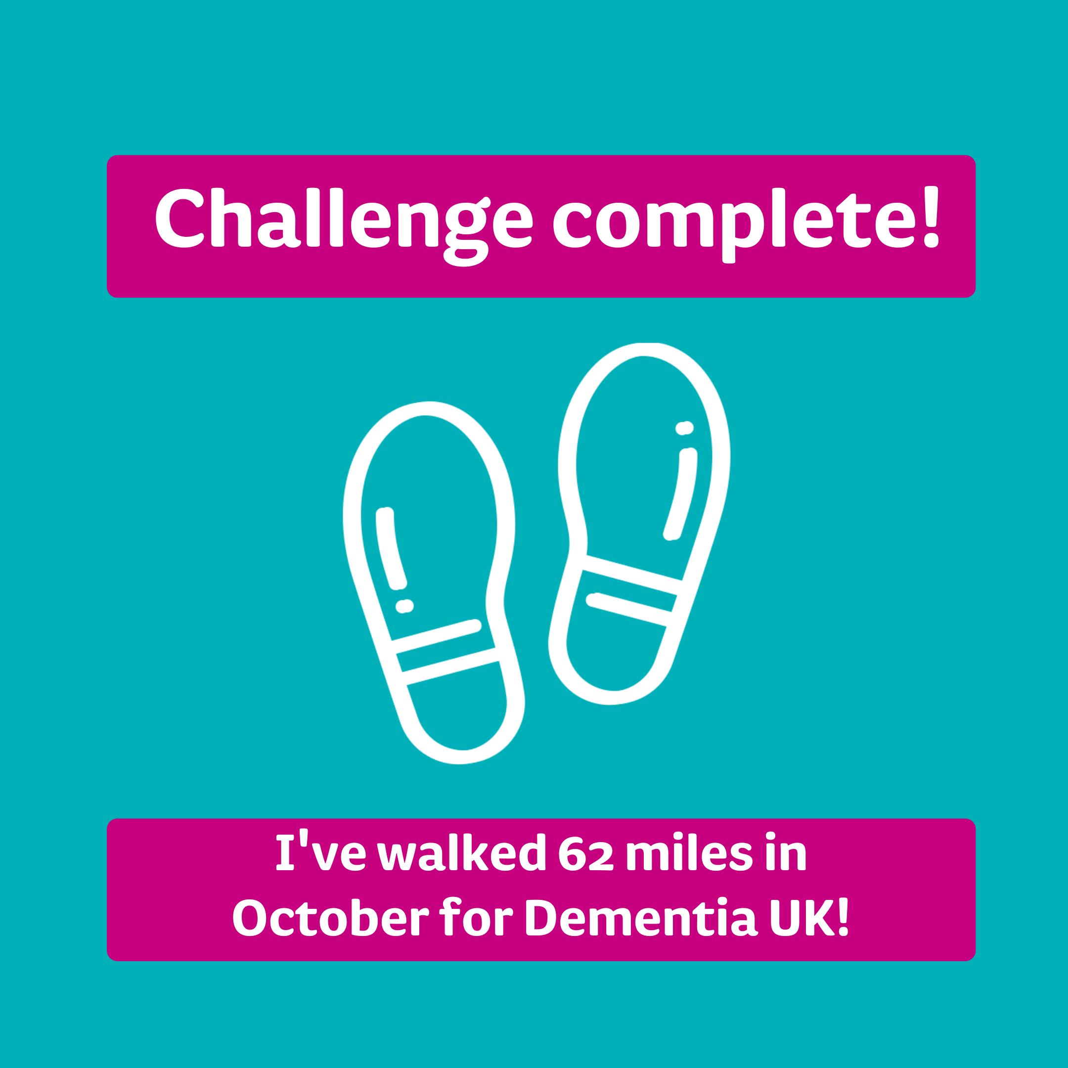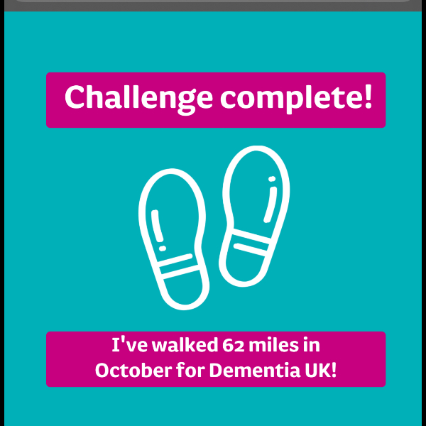 I’m walking 62 Miles in October and raising funds so that families affected by dementia get the specialist help and advice they need. I would be grateful for your support.