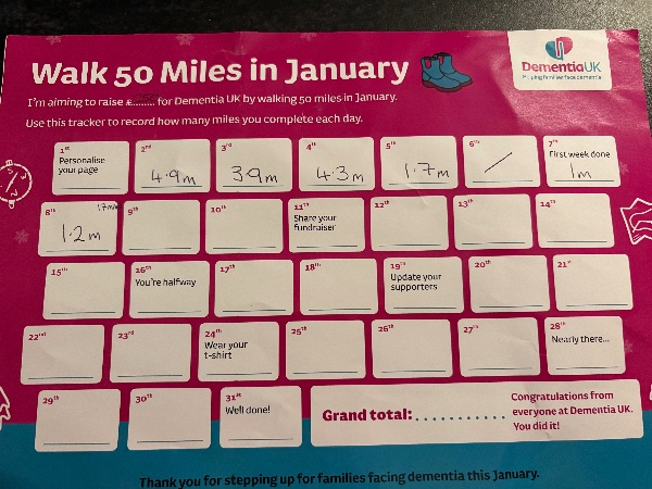 I'm walking 50 Miles in January for Dementia UK