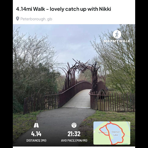 A little something for today’s walk. Really enjoyed seeing you today and being with you when you reached the 50 miles. Well done x