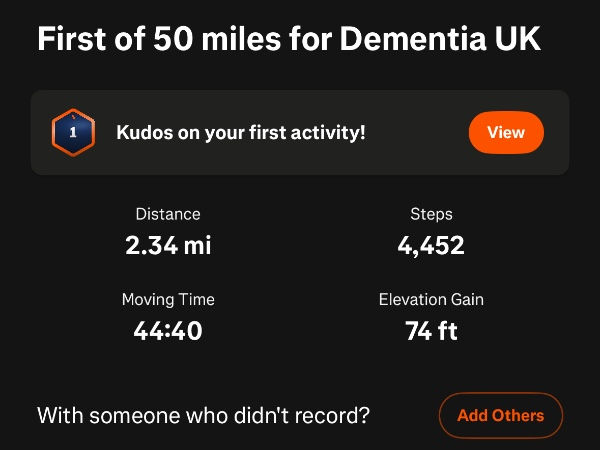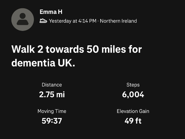I'm walking 50 Miles in January for Dementia UK