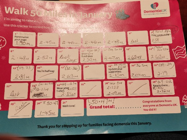 I'm walking 50 Miles in January for Dementia UK