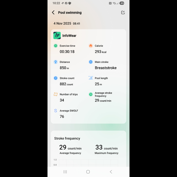 Wednesday 5th Nov Official total now 1825m based on my Chinese smartwatch. Unofficial total based an counting lengths 1900m Share