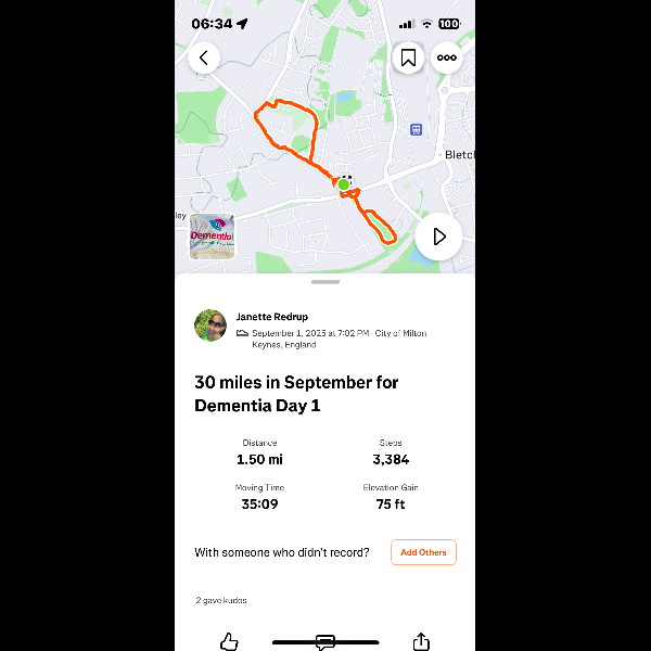 I’m walking 30 Miles in September and raising funds for families affected by dementia. I would be grateful for your support.