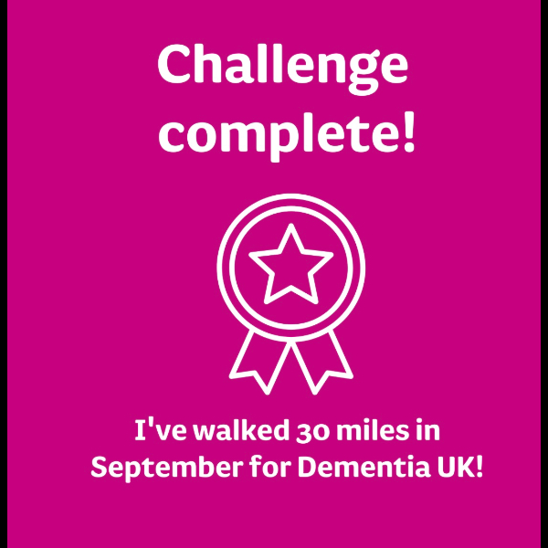 I’m walking 30 Miles in September and raising funds for families affected by dementia. I would be grateful for your support.