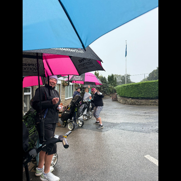Friday 3rd Oct Queensbury set off on a windy, rainy typical Queensbury morning… brollies up for the first 18 holes! Then some lovely chilli, prosecco and buns, all donated…. Second 18 the weather improved and the seven ladies were joined by another 3 ladies to support - thank you!
