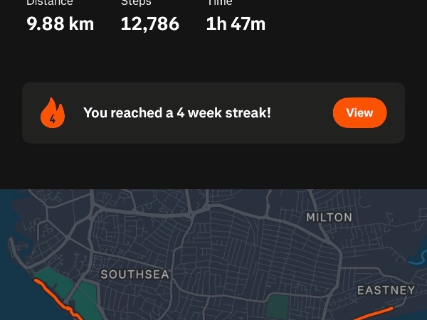 2.19 miles completed - 42.13 miles to go!