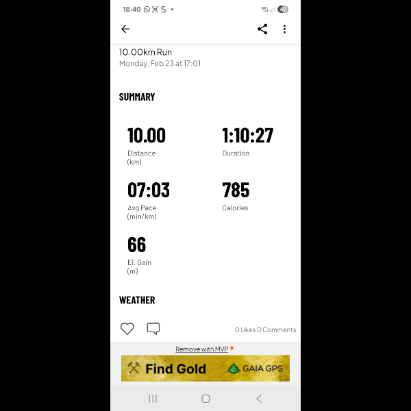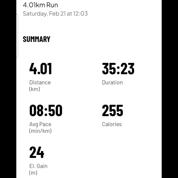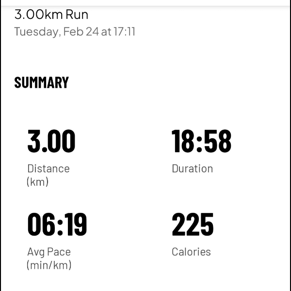 Saturday 21st Feb Another 4k run and taking it slowly today. Only 20km left to complete in next 7 days. Share