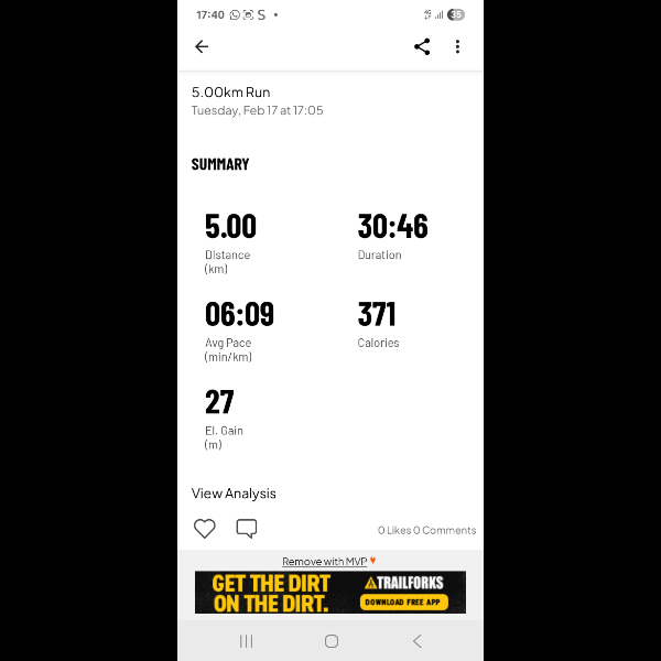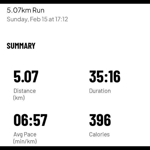Sunday 15th Feb Finally the rain eased off today, enabling Myself to complrte another 5km today.