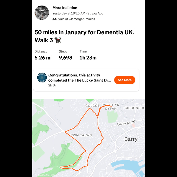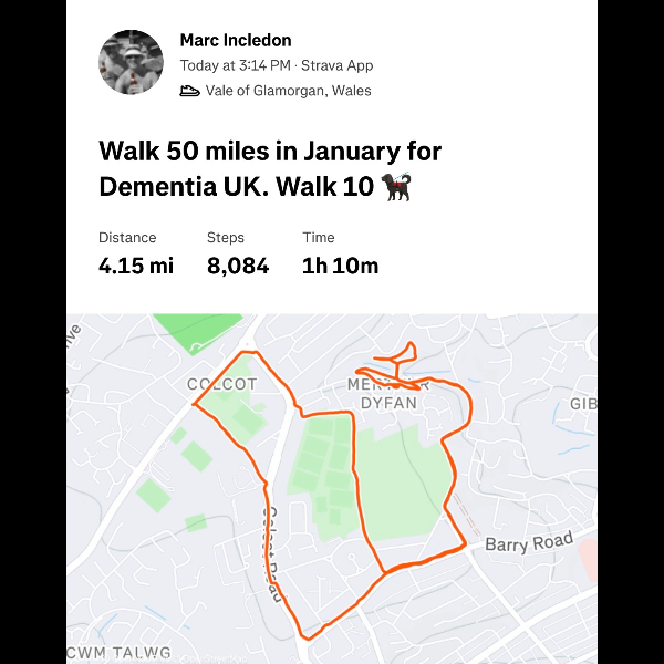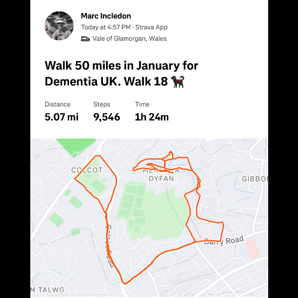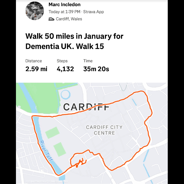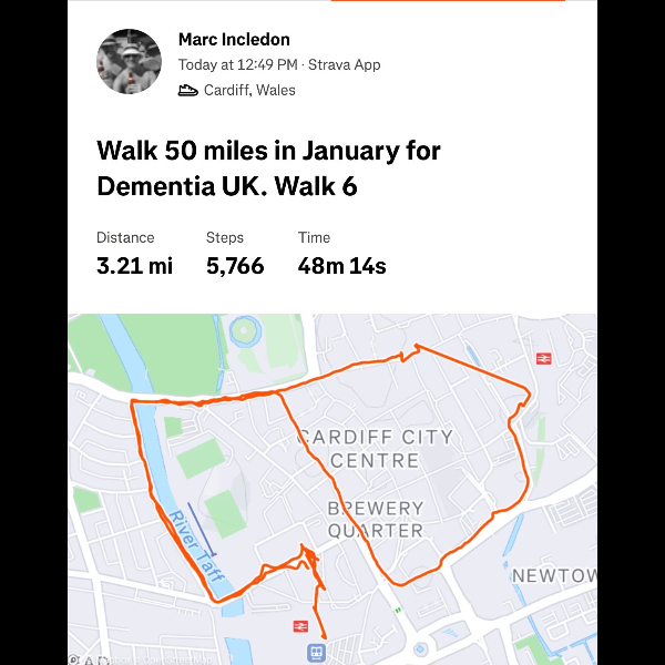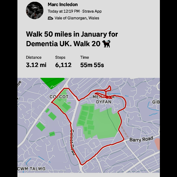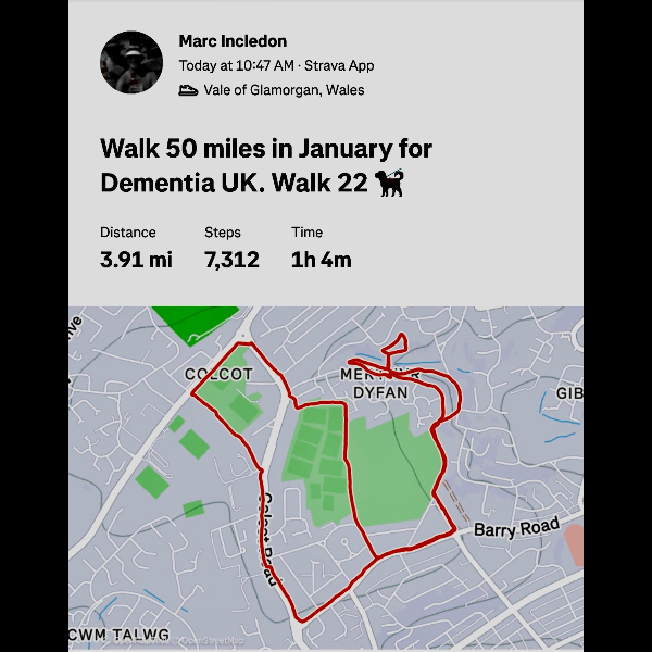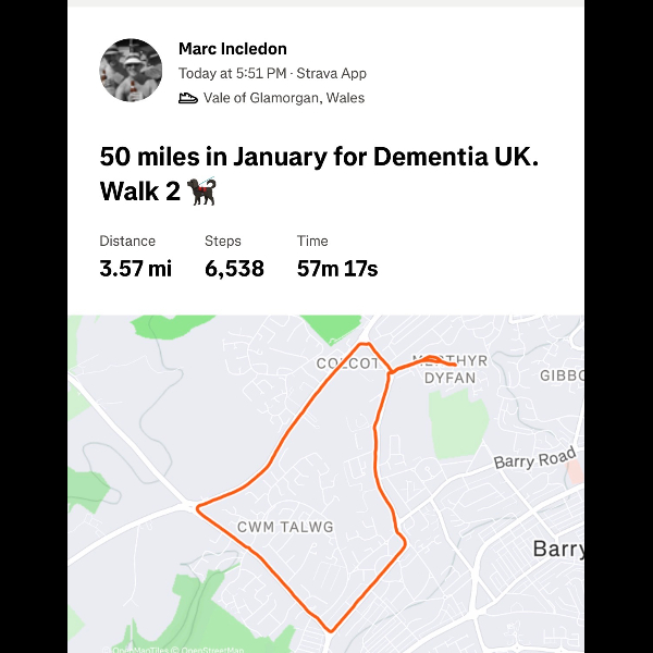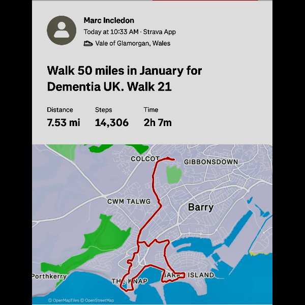 Dear Marc, such an amazing gesture for your beloved Dad to walk in this miserable cold month of Jan 26 in aid of Dementia. I did something similar when my Mum passed on 28.12.2010. Everyone must be so proud of you as we all are. Take care. Love Shelina xx