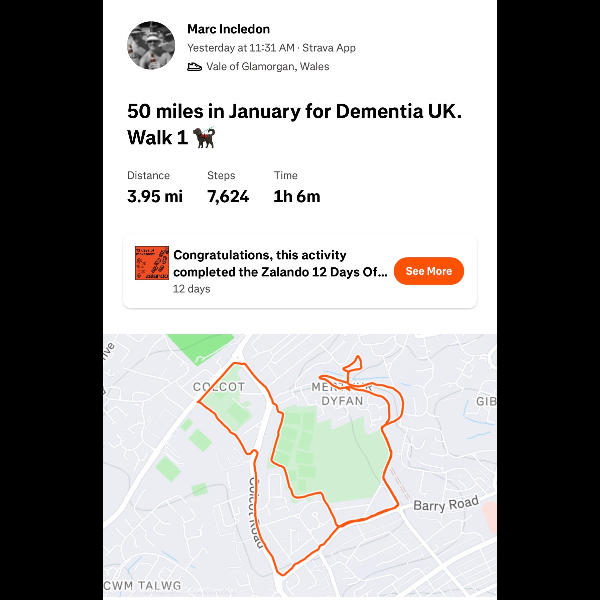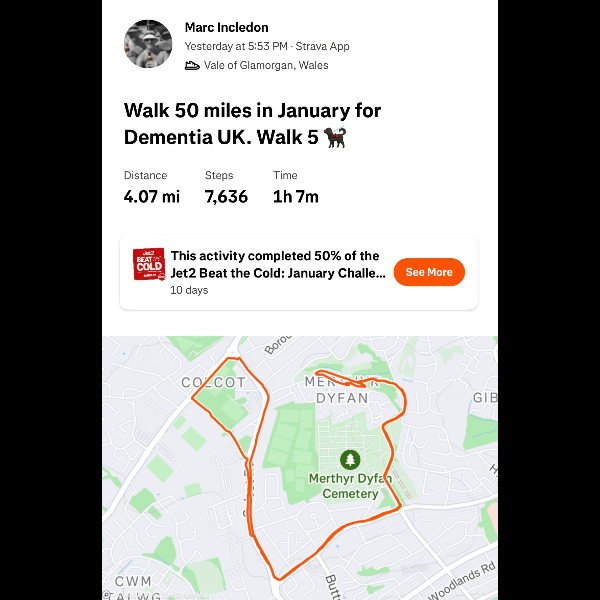 I'm walking 50 Miles in January for Dementia UK