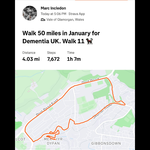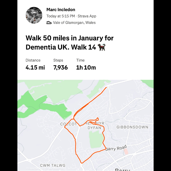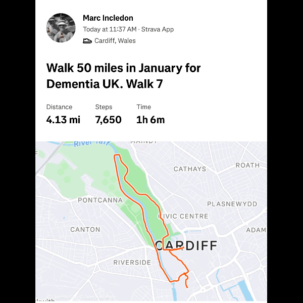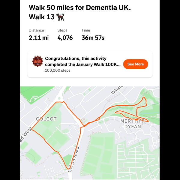 This January, I'm walking 50 Miles and raising funds to help ensure no family faces dementia alone. I'm taking on the challenge for Dementia UK, the specialist dementia nursing charity, and would be grateful for your support.