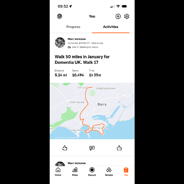 Sunday 18th Jan Walk number 17 completed 👍 Total miles to date 69.25 Share