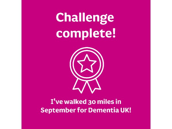 I’m walking 30 Miles in September and raising funds for families affected by dementia. I would be grateful for your support.