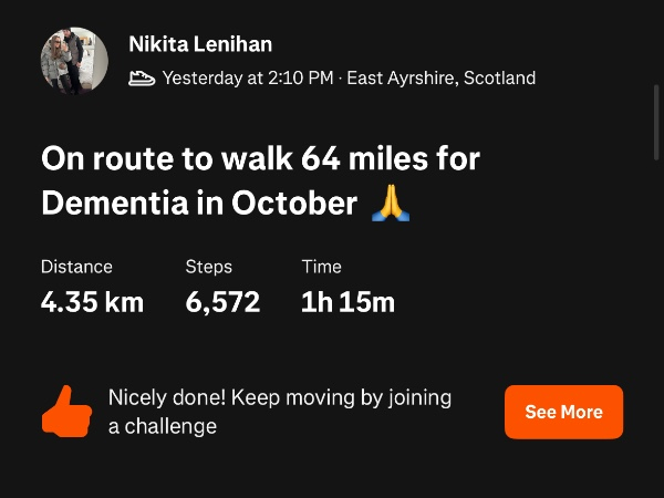 Wednesday 1st Oct I am walking 62 miles in October for my beautiful Nanny who has been diagnosed with both Alzheimer’s and Dementia. She has been so strong and I want to honour her journey and strength by raising money to beat this horrible disease 💕💕💕 ShareThank you to my Sponsors