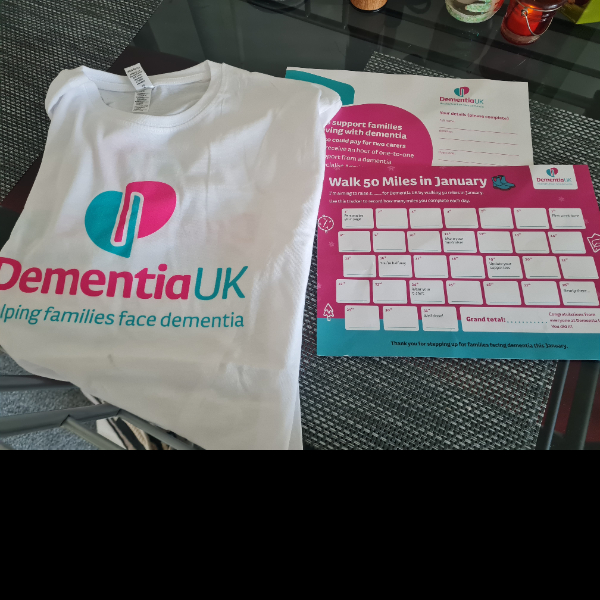 This January, I'm walking 50 Miles and raising funds to help ensure no family faces dementia alone. I'm taking on the challenge for Dementia UK, the specialist dementia nursing charity, and would be grateful for your support.