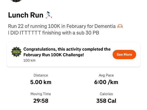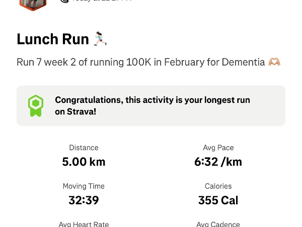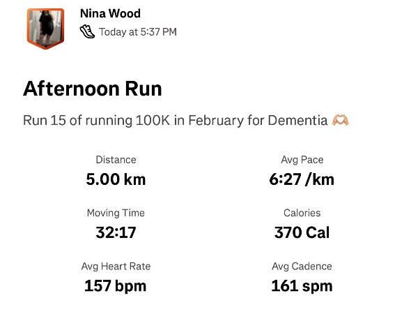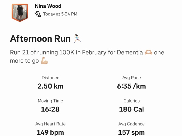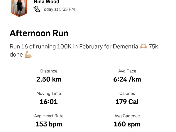 This February, I'm running 100K and raising funds to help ensure no family faces dementia alone. I'm taking on the challenge for Dementia UK, the specialist dementia nursing charity, and would be grateful for your support.