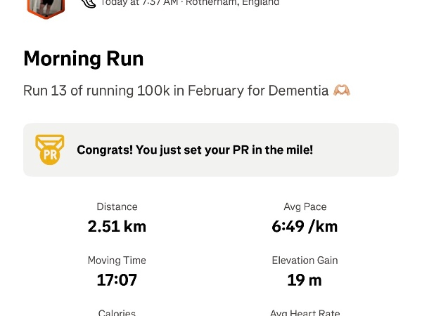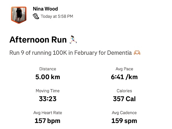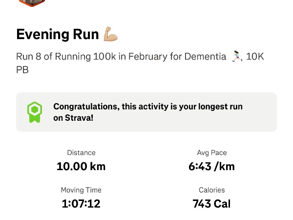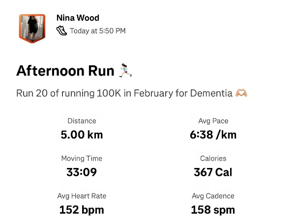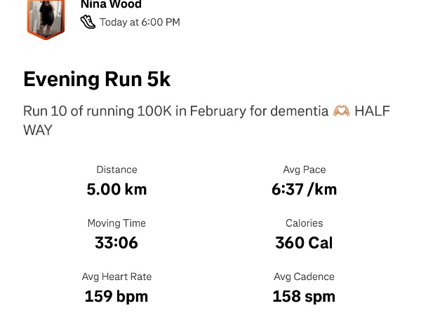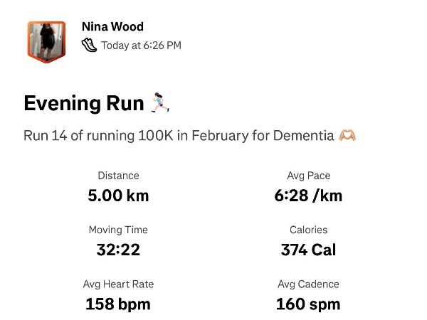 I'm running 100K for Dementia UK