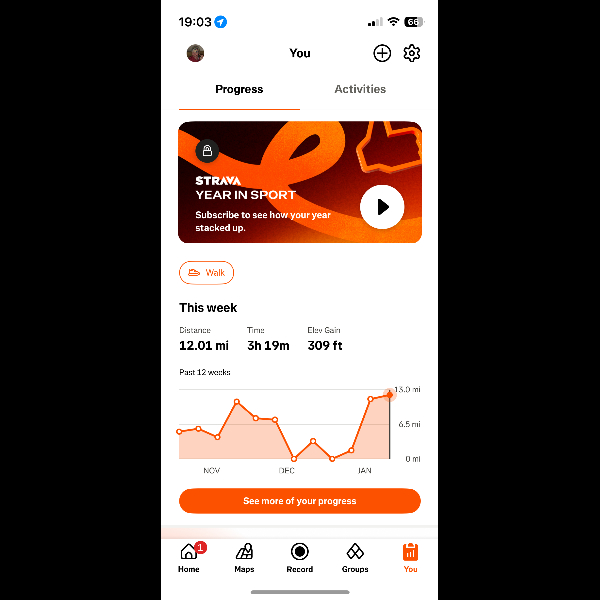 Sunday 11th Jan Ending this week on 12.01 (even though I did more . Strava decided to play up).