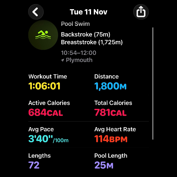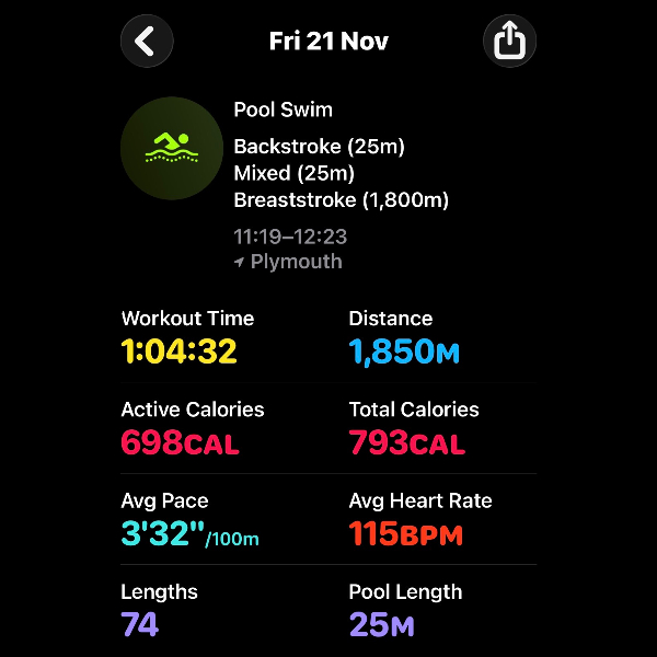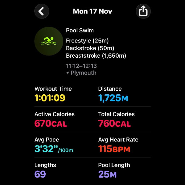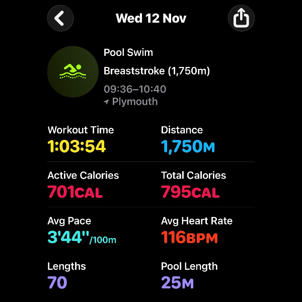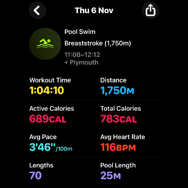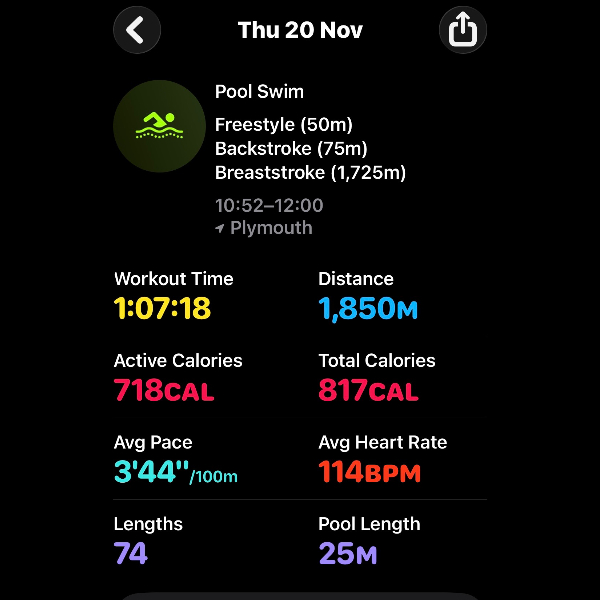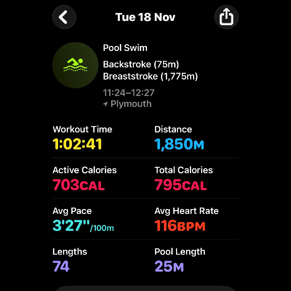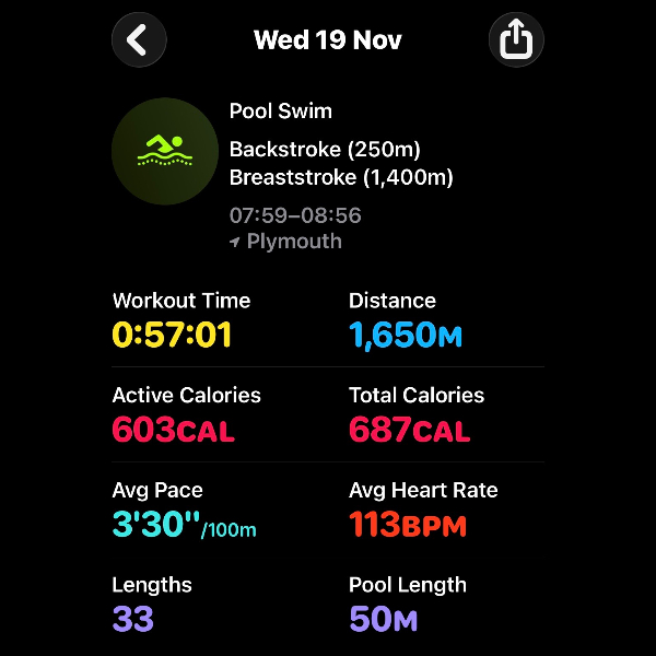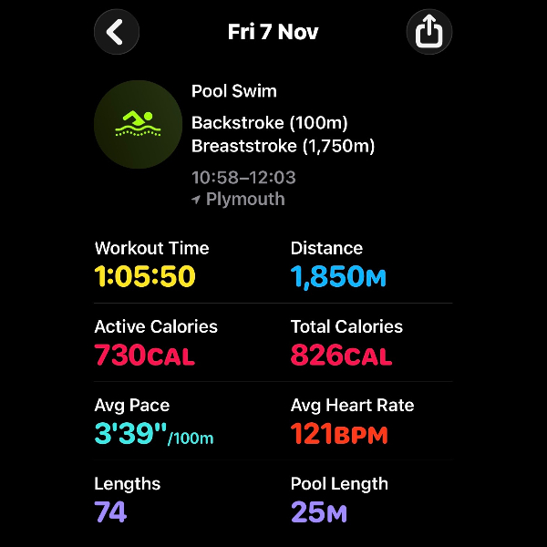 Thursday 6th NovThis month I'm swimming 15km to raise funds for Dementia UK.