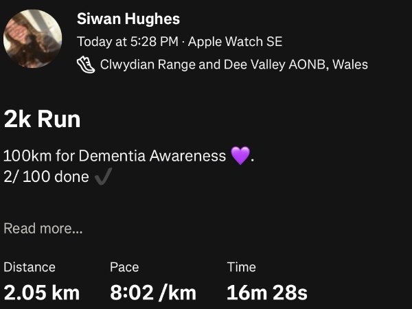 100km for Dementia Awareness 💜