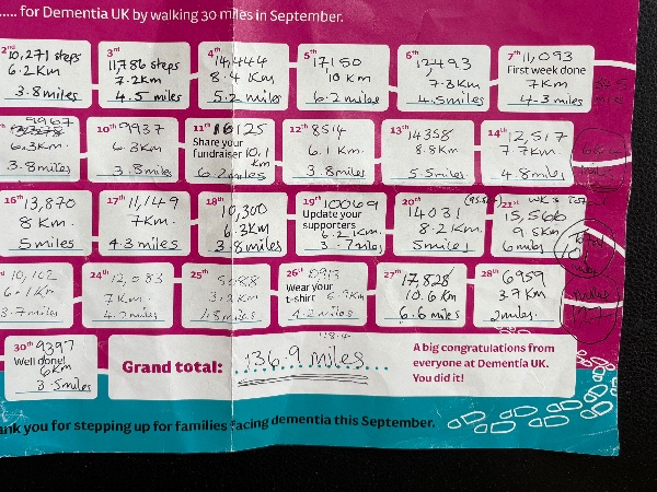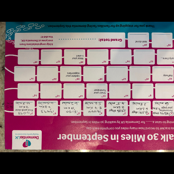 I’m walking a minimum of 30 Miles in September and raising funds for families affected by dementia. I would be grateful for your support.